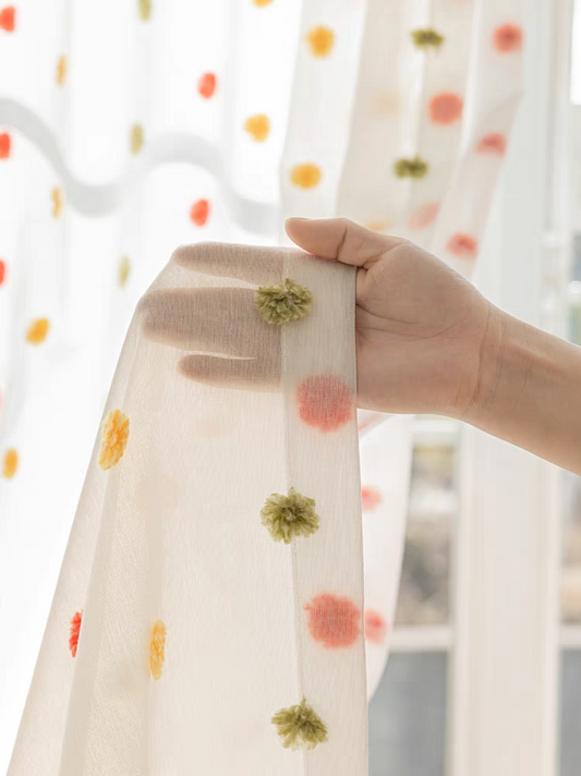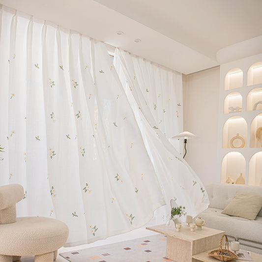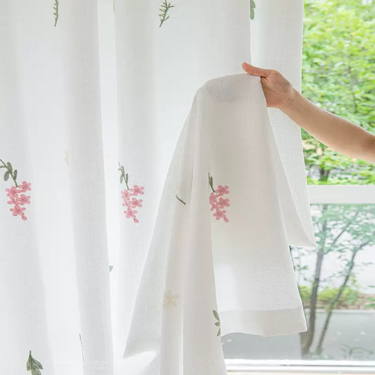 刺繍レースカーテン/Embroidered privacy gauze curtains, free door delivery【YX-0208】