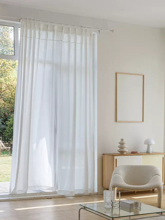 和風ストライプのシンプルスタイルのボイルレースカーテン、リネン素材のような風合いで、1cm単位でサイズオーダー可能なレースカーテン 576750911088
